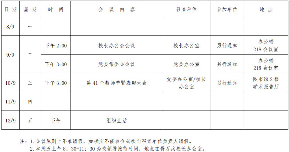 第二周会议安排
